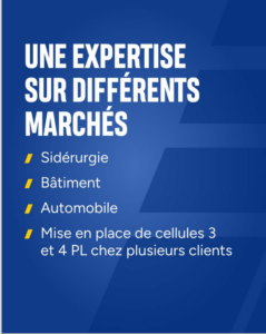 Historiquement proche du secteur de la sidérurgie, notre filiale a élargi son savoir-faire au bâtiment, à l’automobile, et à la mise en place de cellules 3PL et 4PL chez nos clients.